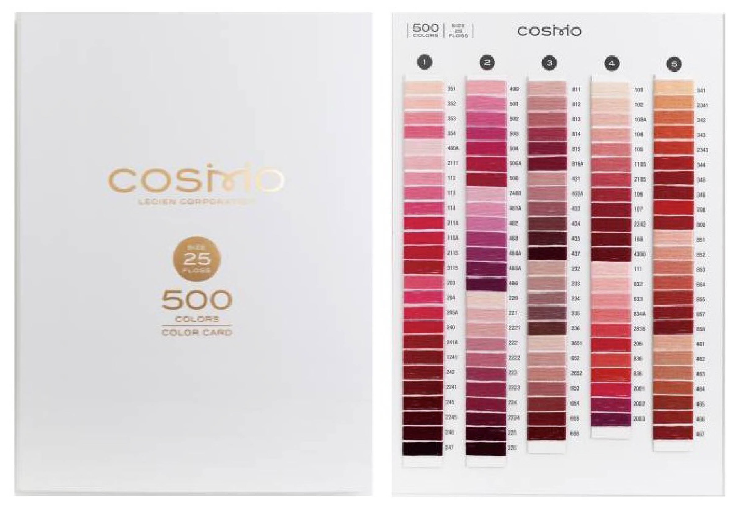 The Cosmo Floss Color Card includes actual floss samples (not pictures) of all 501 colors of their luscious, 100% cotton stranded floss!
