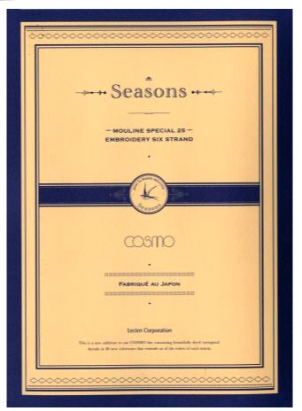 Seasons is the Cosmo line of variegated stranded floss. The Seasons Color Card includes floss samples of all 140 colors of their variegated thread.