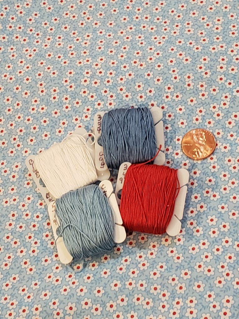 100% cotton.  Coton a Broder #25 is the perfect thread for smocking and embroidery.  The set includes 4 skeins -1 each of Blanc (white), 334 (blue), 349 (red), and 519 (light blue) – are included.